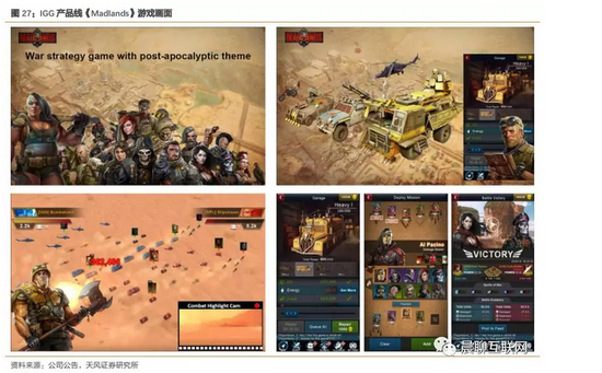 1)《Madland》:末日题材的战争策略类游戏,由加拿大团队打造,美术风格与国内不同,体现IGG针对全球化研发的全球化战略;2018年3-4月会进行测试,4-5月上线;该游戏开发计划最初在2017年3月业绩会披露。走精品路线的IGG研发超过1年,产品质量值得期待;