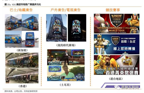 集团全球化研运一体背后营销能力也有显著提升,从营销手段与渠道两方面均有明显改善。从营销渠道上,从巴士、地铁广告到户外、电视广告,横跨全球不同国家及地区;同时举办多种不同电竞赛事,并邀请明星助阵,为游戏玩家增添更多乐趣。游戏制作音乐、宣传材料与全球顶尖团队合作,提高游戏质量与宣传材料质量,为低成本获客铺路。