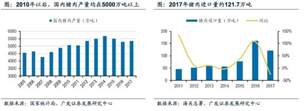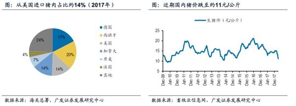 从美国进口猪肉的消费占比低、当前内外价差小,实际影响有限。2017年,我国猪肉进口量121.7万吨,其中美国进口量约16.57万吨,国内猪肉年消费量在5000万吨以上,美国进口量占比极低,贸易摩擦对国内猪肉供需实际影响较为有限。另外,近期国内猪价下跌,进口利润大幅收窄,进口猪肉本已不具备优势。