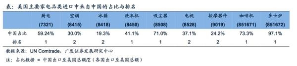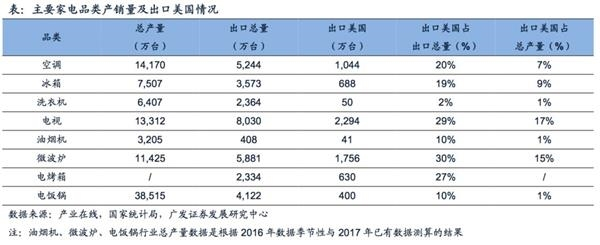 首先,出口至美国的家电产品以及相关收入无论从行业角度来看(出口至美国的销量中占国内总产量最高不足20%)还是从公司角度来看(来自美国的销售收入占总收入比例最高不超过30%)占比都相对较低,因此我们认为本次拟对华进口商品加征关税实质上对行业影响有限。
