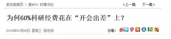 在2016年,新京报、财新网甚至新华网都在关注一件事情:过去数年间,全国科研经费大概只有40%是真正用在科技研发,60%用于开会。