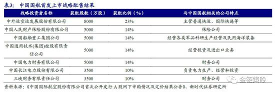 2006年8月18日,中国国航采取战略配售方式首发上市,发行总量原定为27亿股,受网下配售缩水影响调整至16.39亿股,其中战略投资者份额不变。最终配售结果显示,7家战略投资者累计获配35000万股,到账金额达103250万元,锁定期均为18个月。配售股流通当日解禁数量占解禁后流通股比例为21.35%,收盘价为21.81元,相比上市首发价格增长近7倍。