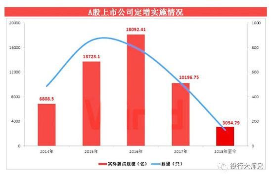 首先是搞定增。当时,任何一家公司,随便找个理由,几乎都能拿到批文,而且一定会被一抢而空。甚至于,还会被溢价(高于市场价)抢购。那两年,整个A股的定增数额呈现井喷式发展,2015年高达14000亿!