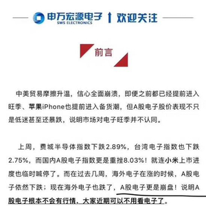 【申万宏源电子】 | 一周观点:贸易摩擦乌云,遮掩苹果光芒;年内旺季来临,信心处于崩溃
