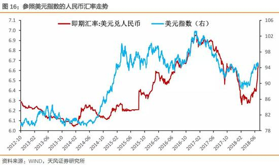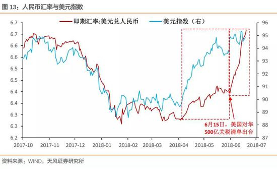 在6月15日之前,贸易战仍然寄希望于在谈判的渠道中避免开打,这种情况下,央行也有意引导人民币的稳定甚至升值释放善意(有利于压缩对美贸易顺差),市场基于美日、美德贸易战经验,也存在这个升值预期,这是一个汇率先行的框架,形成了我们说的人民币贬值的幅度显著小于美元指数上行的幅度。