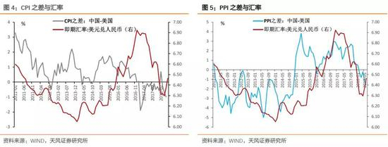 从中美通胀相对变动和汇率的关系而言:CPI之差呈现了某种程度的正向关系,即中国CPI相对上升,人民币汇率相对上升,这明显不符合购买力平价理论;