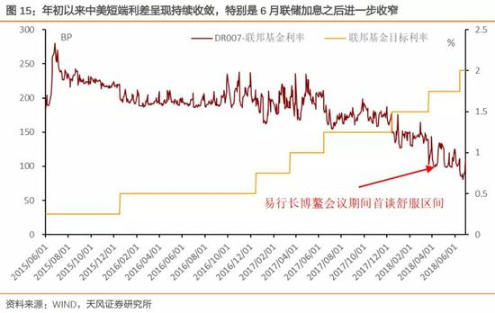 而央行没有跟进加息的直接结果就是中美利差在短端直接滑出了易行长之前所提的舒服区间。