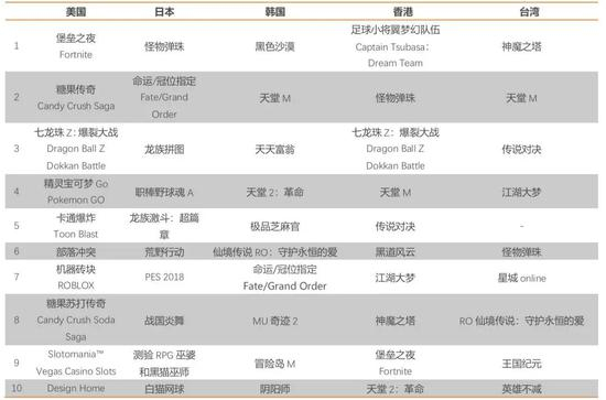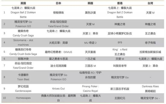 根据App Store 2018年7月13日数据,海外主要市场及香港、台湾iOS游戏畅销榜排名如下表: