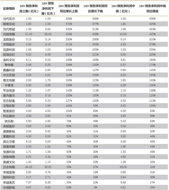 表1:传媒板块18H1业绩预告一览(含18Q1\Q2单季度excel详询团队)