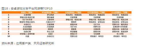 华为应用市场平台网游下载前十:网易《梦幻西游》/《倩女幽魂》/《大话西游》/《率土之滨》排名第一/第二/第六/第八,恺英网络《王者传奇》排名第三,凯撒文化《三国志2017》排名第四,腾讯《王者荣耀》排名第五,网易《阴阳师》排名第七,巨人网络《征途2》排名第九,三七互娱《永恒纪元》排名第十;