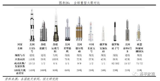 空间技术不单单指具体某项技术,而是囊括从火箭与航天器制造、航天器发射至航天器能稳定运行中涉及到的各项技术。最有代表性的为重型火箭技术、载人航天技术、空间站技术与深空探测技术,从全球视野来看,我国是全球为数不多的能够独立实施登月计划、载人航天计划、天空站计划等,说明我国航天攻克核心技术数量多、涉及范围广;但与美国相比,我国需要在总体效率与质量上继续提升。由于载人航天、空间站与深空探测均需要以重型运载火箭技术为基础,下文以重型火箭技术为例具体分析我国的空间技术实力。