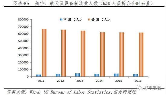 3)专业人才缺乏。我国在专业人才的培育体系与人才支持上欠缺,从业人数差距更大。2016年我国航空、航天及设备制造业人数为35296人,而美国为617420人,相差十倍之多,与航天相关的服务业人数差距更大。
