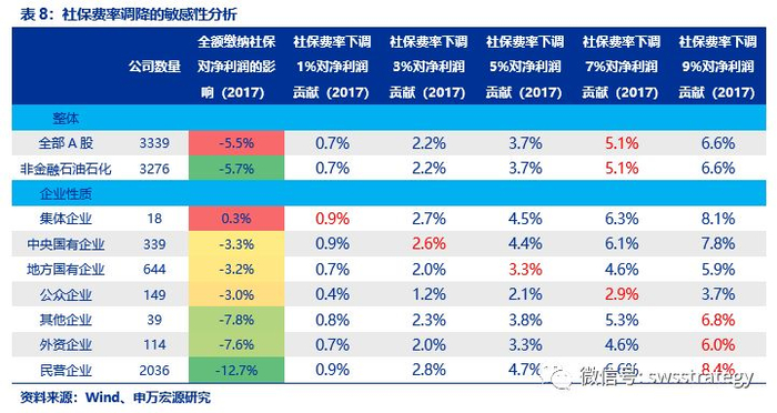 如需完全抵消A股上市民营企业的全额缴纳社保的负面冲击,社保费率需要调降接近14%。