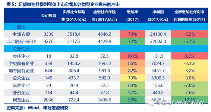 四、若足额缴纳社保将导致2017年A股利润下滑5.5%,民营企业受损较大