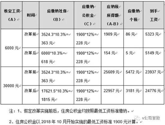 “新个税法8月31日实施后,起征点由每月3500元提高到每月5000元。个税改革与社保征管体制改革同时实施,员工到手工资可能增加,也可能减少。”刘杰测算,以郑州最低工资标准缴纳社保的企业员工而言,2019年新的个税改革与社保征管体制改革实施后,核定工资为6000元的员工到手收入将减少174元,核定工资为30000元的员工到手收入将增加839元。