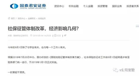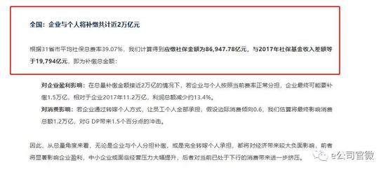 其中国泰君安的研报最为引人注目,其测量全国总量最终影响表示,在征管体制改革后,企业与个人将补缴共计近2万亿元。