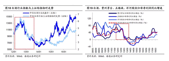 塑化剂事件后白酒消费结构出现重大调整,2015年迎来新一轮景气周期。由于白酒中检测出的塑化剂来源说法不一,加之塑化剂标准含量本身难于定论,事件发生后塑化剂含量的新标准出台较为缓慢,直到14年6月由国家卫计委公布了白酒产品中塑化剂风险评估结果,其塑化剂标准较11年卫生部下达511文件中的标准有所放宽。但随后限制三公消费的政策则对白酒行业基本面产生了深远影响。白酒消费结构发生重大变化,消费主体逐渐由政府转向居民,随后几年中白酒企业纷纷推出中低档产品,茅台对旗下的酱酒、仁酒降价一半,五粮液推出五粮特曲精品等三款中低端白酒。另一方面,白酒企业开展互联网营销,茅台于2014年成立电子商务公司,开始O2O业务,五粮液也在2015年搭建了自己的电商平台。为应对供给端过剩产能,各大酒企也减慢了投资步伐。经过三年多调整,白酒消费重心转移向个人,2012年以前政务消费占比约40%,个人消费约18%,而2014年以后,政务消费大幅降至5%,个人消费升至45%。在消费升级带动下,中低端白酒需求萎缩,龙头企竞争力显现,白酒上市公司行业集中度CR3从2012年的58%升至2017年的65%。2015年前后白酒股基本面重新向好,迎来新一轮景气周期,白酒行业的归母净利累计同比增速从14Q3的低点-21.6%涨至17Q4的高点43.3%,ROE从20.9%升至22.1%,相关龙头股价创下历史新高,15年至18年8月,中信白酒行业指数、茅台、五粮液、洋河累计涨跌幅分别为153.8%、269.1%、178.2%、84.3%,同期上证综指下跌-20.3%。基金重仓股中白酒持仓占比从15Q1的0.5%(2.2%分位)一路升至18Q2的10.2%(89.0%分位)。