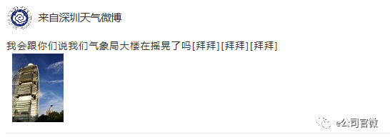 深圳气象局也发微博调侃称,称气象局大楼在摇晃。
