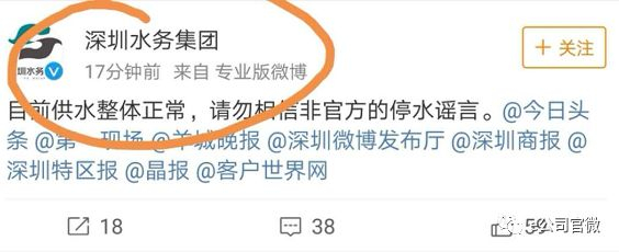 2、今日传闻,深圳下午3点将全市停水,深圳水务集团随后辟谣,称供水整体正常,勿相信非官方的停水谣言。