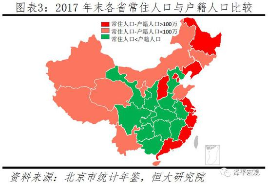 户籍人口间接反映人口流动情况主要体现在两个方面:一是从户籍人口机械增长情况判断。把户籍人口增长分解为自然增长和机械增长,当户籍人口增长超过自然增长时,该地区户籍人口面临净迁入;反之,则面临户籍净迁出。在不考虑落户限制的情况下,某地户籍人口净迁出,表明该地区缺乏吸引力,常住人口大概率面临净流出。比如,2001-2010年户籍人口流出且常住人口流出的地区数占户籍人口流出地区数的87%,2011-2016年为77%。不过,户籍人口净流入,则不一定意味着常住人口流入,比如外来人口规模减少、常住人口净流出,但同时外来人口中落户增加、户籍人口净流入,2001-2010年、2011-2016年在户籍人口流入情况下常住人口流入的概率分别为53.1%、40.9%。