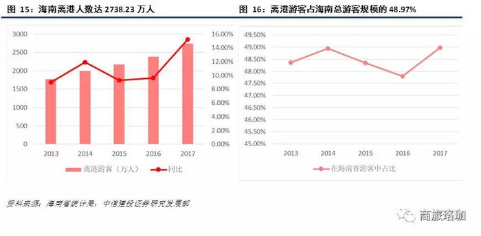 港口覆盖全岛近半客流,潜力较大。至2017年,港口离岛游客规模已经达2,738.23万人,同比增速15.2%,仍在加速增长中。从占比来看,离港游客占海南省总游客量的48.97%,高于两大机场。因此,对海南省而言,港口免税店的落地是离岛免税政策完善的必要环节。