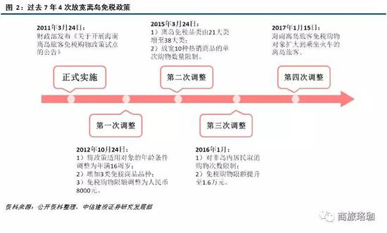 试点政策逐步完善,释放更多红利。从调整频率来看,离岛免税政策在2015-2017这3年里每年一调,密集出台,表明对离岛免税政策的完善在持续进行,且频率较高。