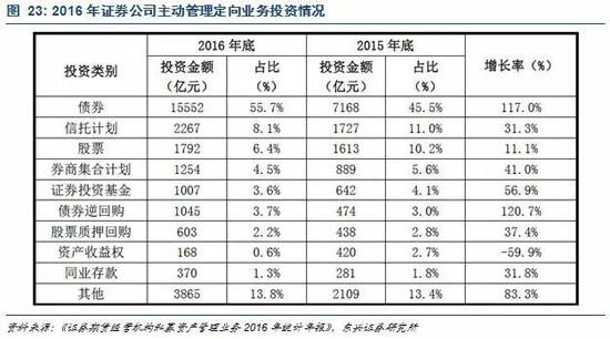 以绝对收益为主要目标,债券投资的规模同比大幅增长,定向主动业务的债券资产规模增长了117%,集合计划的债券资产规模增长了137.3%。