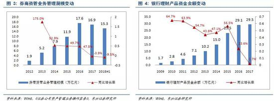 券商资管规模也从2012年的1.9万亿元增长了7倍到2017年的16.9万亿元。