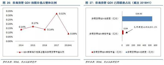 在全球资产配置方面,目前券商集合计划的资管产品的海外资产配置虽然在2017年有较大幅度的增长,但依然整体规模较小。截至2018年上半年,占比有较大幅度下滑,仅占整体券商资管股票持仓市值的0.09%。从券商的QDII额度方面来看,目前共有15家券商获批81.6亿美元(539.95亿元)的QDII整体额度。券商资管QDII在2018上半年已用额度为0.84亿元,占比仅为0.15%。券商资管的全球资产配置实际上还尚未开启,在国内“资产荒”和对外开放不断深化的背景下,全球配置具有较大的发展潜力。