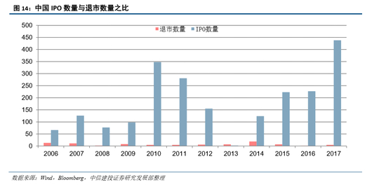 在科创板试点注册制应当有转板与退市制度相配套。根据美国NASDAQ市场的分析,在一个成熟的创新企业市场,后续应逐步出台转板政策,转板有利于实现企业的正向激励。美国OTCBB转板上市数量及占比长期稳定在2%左右。此外,一个推行注册制的板块必然需要有相应的退市制度配合,在成熟的市场中退市数量和上市数量大体相近,实现优胜劣汰。在中国,由于退市制度不完善,退市公司数远少于上市公司数。