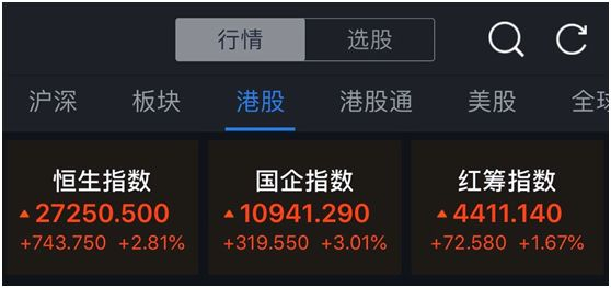 港交所的市值同样出现了暴涨,据统计港交所11月底的市值在30.3万亿港币左右,今日截止11点半左右,恒生指数额涨幅达到了2.81%,国企指数的涨幅更是超过了3%。