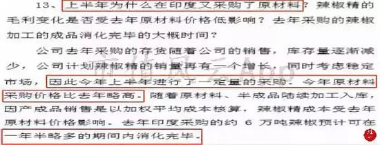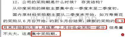 我们再看公司给的采购期回复,公司称辣椒的集中采购是从上年9月末到次年1月、2月。其余期间很少采购。