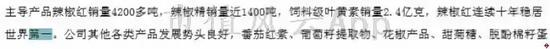 如今,公司继续保持辣椒红色素的行业龙头地位,同时,辣椒精、叶黄素也做到了产销量世界十一,成为公司的优势产品。