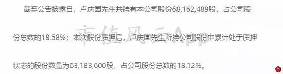 也就是在解锁第2天,趁当天股价来了次高开,公司第一大股东卢庆国,出于个人资金需求,将所持公司18.58%的股份进行了一次质押,质押18.12%,质押率达97.5%。