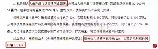 而棉籽类贸易业务,则是一种期货交易,棉籽类贸易商可通过低价在产棉区采购,再按照约定价格卖给下游油棉厂,赚取中间差价来获利,而这类大宗商品交易价格受市场波动影响较大,价格趋势难以预测。