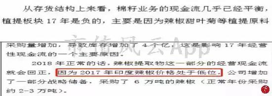 根据8月份的问答信息,公司给投资者的回复是,这6万吨辣椒需要一年半略多的时间消耗完毕。而且,在存货结构中,棉籽业务的现金流已经实现平衡,而植提板块仍然还是属于净支出阶段。