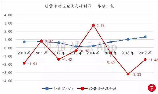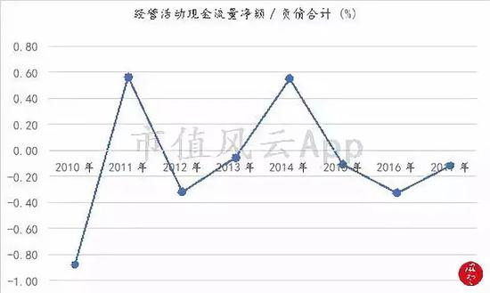 而且,公司自上市之后的8年里,经营活动现金流量净额均无法覆盖公司的负债,而且,有6年还是负数,意味着,公司的自我造血能力存在较大的问题。