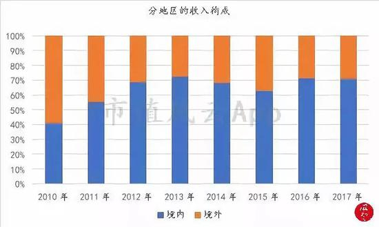 但从分地区的收入构成来看,公司近年来的销售市场开始从境外转为以内销为主。