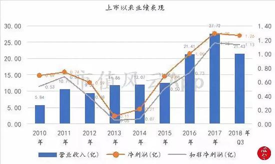 而业绩真正有所突破,是在2016年和2017年这2年,公司营业收入首次突破20亿,净利润突破1亿。