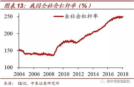 轮番政策刺激带来的结果,是我国杠杆率的大幅飙升,债务问题凸显。在08年之前,我国的收入增长和债务增长是相匹配的,杠杆率水平基本稳定135%附近。但08年之后,随着轮番政策刺激,我国非金融部门的杠杆率水平从135%飙升至2017年底的251%,其中企业部门的杠杆率依然全球最高,居民部门杠杆率已经飙升至高位,政府杠杆率也不低,尤其是地方政府隐性负债规模庞大。