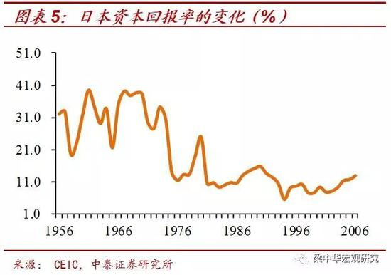 人口不仅对技术进步有影响,还会影响资本的积累。资本回报率是影响投资的关键变量,资本回报率越低,增加投资的动机就越小,而人口、技术进步、资本总量大小都会影响资本回报率。70年代日本劳动年龄人口增速放缓后,日本的资本回报率也明显下降,是日本投资活动逐渐下台阶的重要原因。