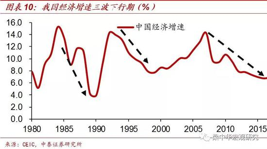 劳动年龄人口增速的下滑,是最近10年我国经济增速下行的主要原因,未来人口对经济的拖累作用会更加明显。在过去四十年里,我国经历了三波经济增速的下行。第一波是在80年代中后期,当时价格双轨制改革,闯关未成,经济改革的市场化程度偏低,是这一波下行的主要原因。第二波是90年代中后期,日本经济大幅放缓,亚洲经济危机,外需受到影响,且内部出现局部产能过剩,内外部因素共振导致经济下行。