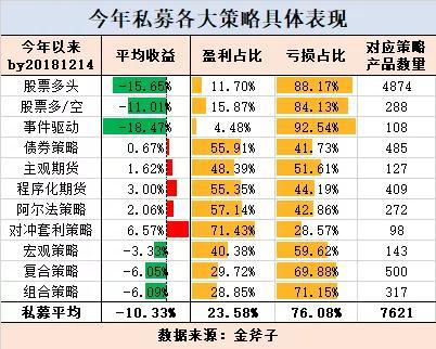 金斧子数据显示,截至12月中旬,纳入统计的288只股票多空产品,其平均亏损达到11.01%;317只组合基金的平均亏损为6.09%,500只复合策略基金的平均亏损为6.05%,143只宏观策略基金的平均亏损为3.33%。