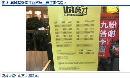 而消费升级最大的阻力我认为是人力,更确切的说是人力成本和劳动力素质,主要体现在工资对应的经营成本压力和劳动力自身的观念上。几乎所有新开的商铺尤其是餐饮行业和亲子中心全在招人,工资水平普遍不低,比如一个收银员月收入中位数大致是在3800-3900元,一个轮滑教练员每个月工资达到4500-5000元,这在县城算是极高收入了,而对比下银行新招员工月到手工资大概700-800元;另一方面,招聘广告中很多都提到了要招募适应快节奏的工作人才,这是对劳动力素质要求提升的具体体现!