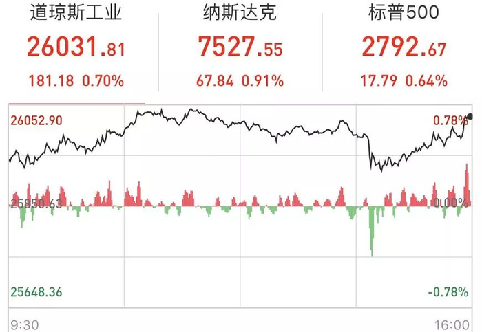 2月22日,美股三大股指小幅高开后,维持震荡走势,截至收盘,道琼斯工业平均指数收涨181.18点,涨幅0.70%,报26031.81点,纳斯达克综合指数收涨67.84点,涨幅0.91%,报7527.54点,标普500指数收涨17.79点,涨幅0.64%,报2792.67点,创2018年11月8日以来收盘新高。