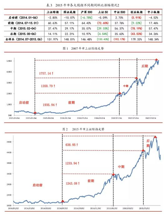 将2007牛市和2015牛市时期划分的情况总结如下表(表1)所示: