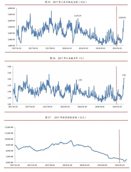 我们认为,年初以来由于内外的“预期差”导致投资者情绪改善,市场走出一波明显的修复性行情,且直到今年“两会”,近期市场表现出来的修复性反弹趋势仍有一定的上行空间。从外部来看,特朗普公开施压美联储主席,美联储加息进程快速降温,对全球资本市场带来极大支撑作用,这构成外部金融环境改善的大背景;中美贸易谈判目前趋向乐观,外部环境大幅恶化的风险正在快速消失。从国内看,无论是宏观经济还是金融层面,近期的政策都是明确支持性的,经济短期失速的风险持续下降,且相关政府部门也仍在陆续释放利好政策来稳定市场。因而,内外情绪改善之下,年初以来的股市走出一波明显的修复性反弹行情。可以预计,伴随着国内外市场环境的改善和政府的政策支持,投资者信心将会进一步增强,增量资金可能会陆续进入市场。