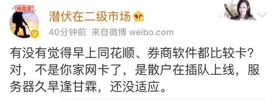 不止是券商服务器崩溃,也有网友反映,同花顺早盘也出现卡顿,服务器报错。