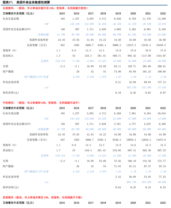 美团本身是一家非常优秀的公司,我们之前有专门针对美团公司的深度报告,在此不赘述,本文主要集中在美团的尴尬局面其实反应了行业竞争格局非稳态情况下公司财务报表以及利润可测性的变差。对于美团来说,核心外卖业务未来盈利能力敏感参数主要有三点:1)整个外卖行业单量或者单均价的增长;2)美团可以实现的变现率(商家扣点+配送费),3)行业竞争造成的补贴率变化.