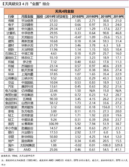 天风 · 月度金股 | 4月